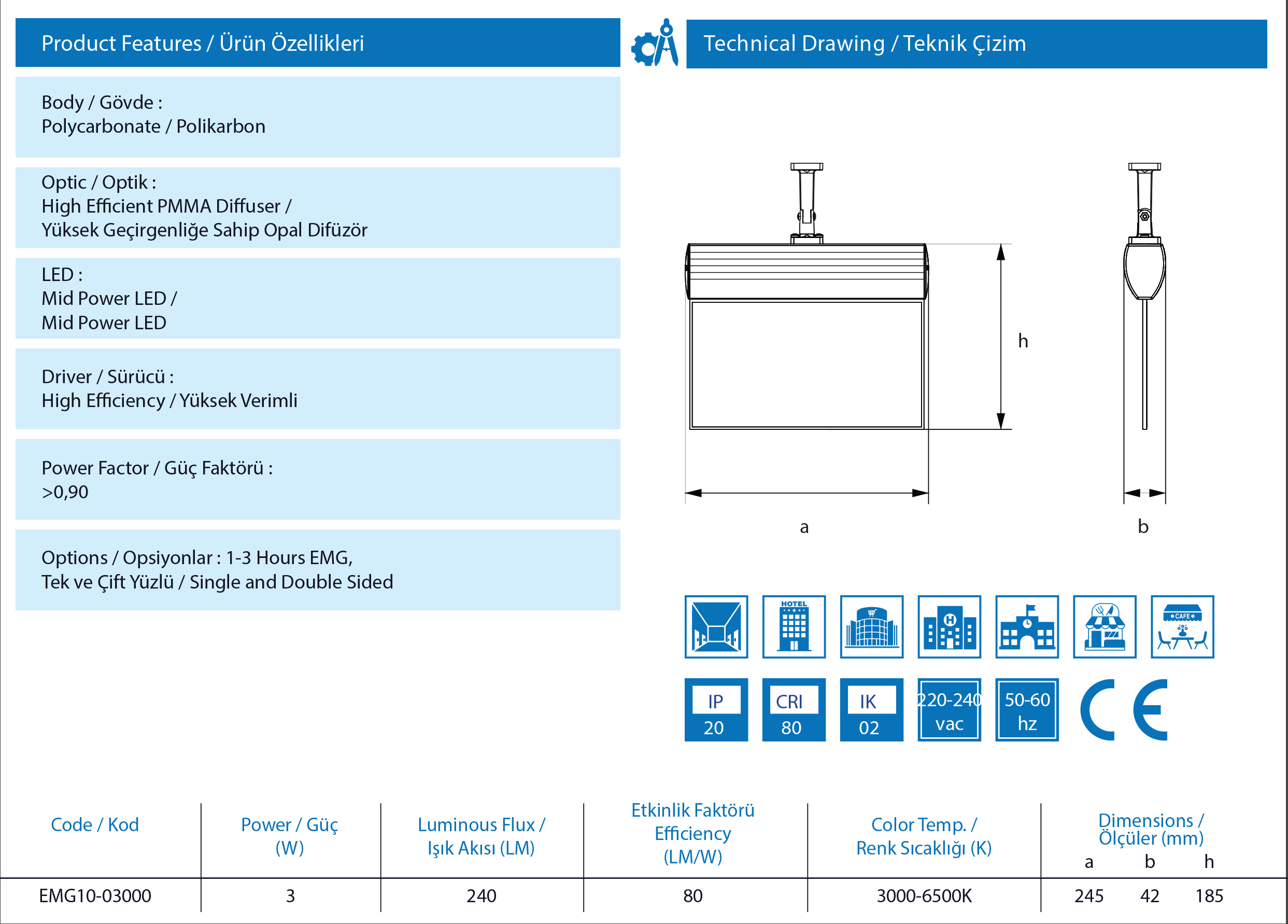 Sıva Altı LED Acil Durum ve Yönlendirme Armatürü